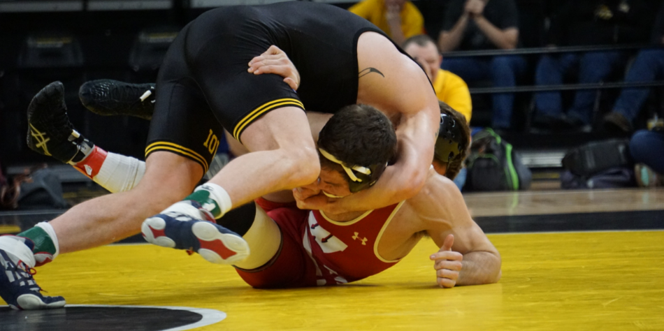 The #3 Iowa Hawkeyes dominated a #16 ranked Wisconsin Badger squad Friday night in Carver Hawkeye Arena. The Hawkeyes were able to get bonus victories at five weights against the Badgers en route to their 33-8 victory. The dual was highlighted by Topher Carton’s major decision over #16 ranked Cole Martin in the dual’s only ranked head to head matchup.