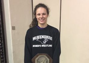 Megan Black of Batavia is a red-shirt Junior for McKendree University (Lebanon, IL). Saturday’s Nationals saw Black dropping from her usual 58 kg (128 lbs.) to wrestle at 55 kg (121 lbs.). Black, ranked #8 at 58kg, went 4-0 for the day. Black opened the tournament with a 13-2 tech fall over Kailyn Ramos of Oklahoma City University followed by a 9-2 decision over McKendree teammate, Lindsey Spjut. In the semifinal bought, Black secured a 6-5 decision over Tamara Tillman of Missouri Baptist, setting up the championship match against teammate #10 ranked Gabrielle Weyhrich where she finished the tournament strong with a fall at 4:47. The championship finish secures Black’s spot on the University World Team.