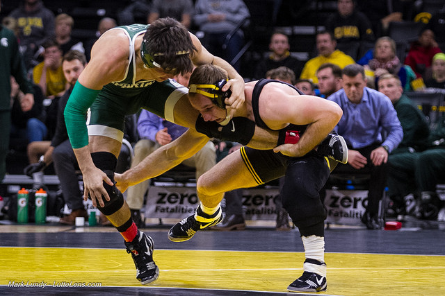 Once again Penn State’s #1 ranked Zain Retherford was able to get the better of Brandon Sorensen winning by decision 6-2. Retherford managed a first period takedown with just over a minute left to secure the first score. Sorensen was able to get out from underneath with under ten second remaining in the first, but a second period rideout from Retherford and third period takedown put the match out of reach for the Hawkeye.