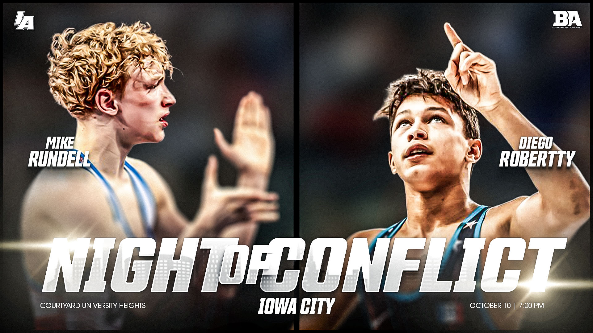 This year’s edition marks a heartfelt homecoming, nearly 10 years to the day from the inaugural Night of Conflict on October 16, 2015, held at the iconic Carver-Hawkeye Arena in Iowa City. The event immediately made a statement by bringing marquee matchups to one of the sport’s most iconic stages. From there, the event hit the road across the state—stopping in Sioux City, Des Moines, Cedar Falls and Waterloo—each year building on its reputation as the place to see state champions collide, national talent test themselves, and rising stars announce their arrival.